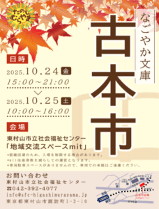 こんにちは♪なごやか文庫担当です。長かかった夏もようやく落ち着き、爽やかな気候となってきましたね。(ヤレヤレですわ笑) ジャジャーン、今年は、春に続き秋にも古本市を開催することとなりました!前回、前々回と好天に恵まれたの […]