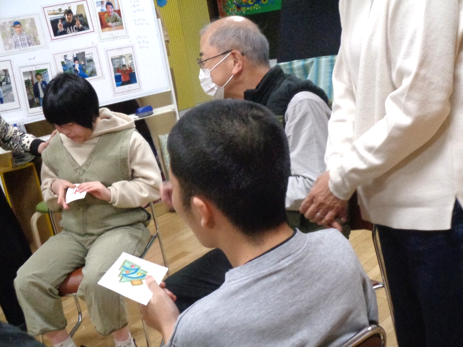 『赤鼻のトナカイ』に合わせて、プレゼントの代わりにカードを回しました。
